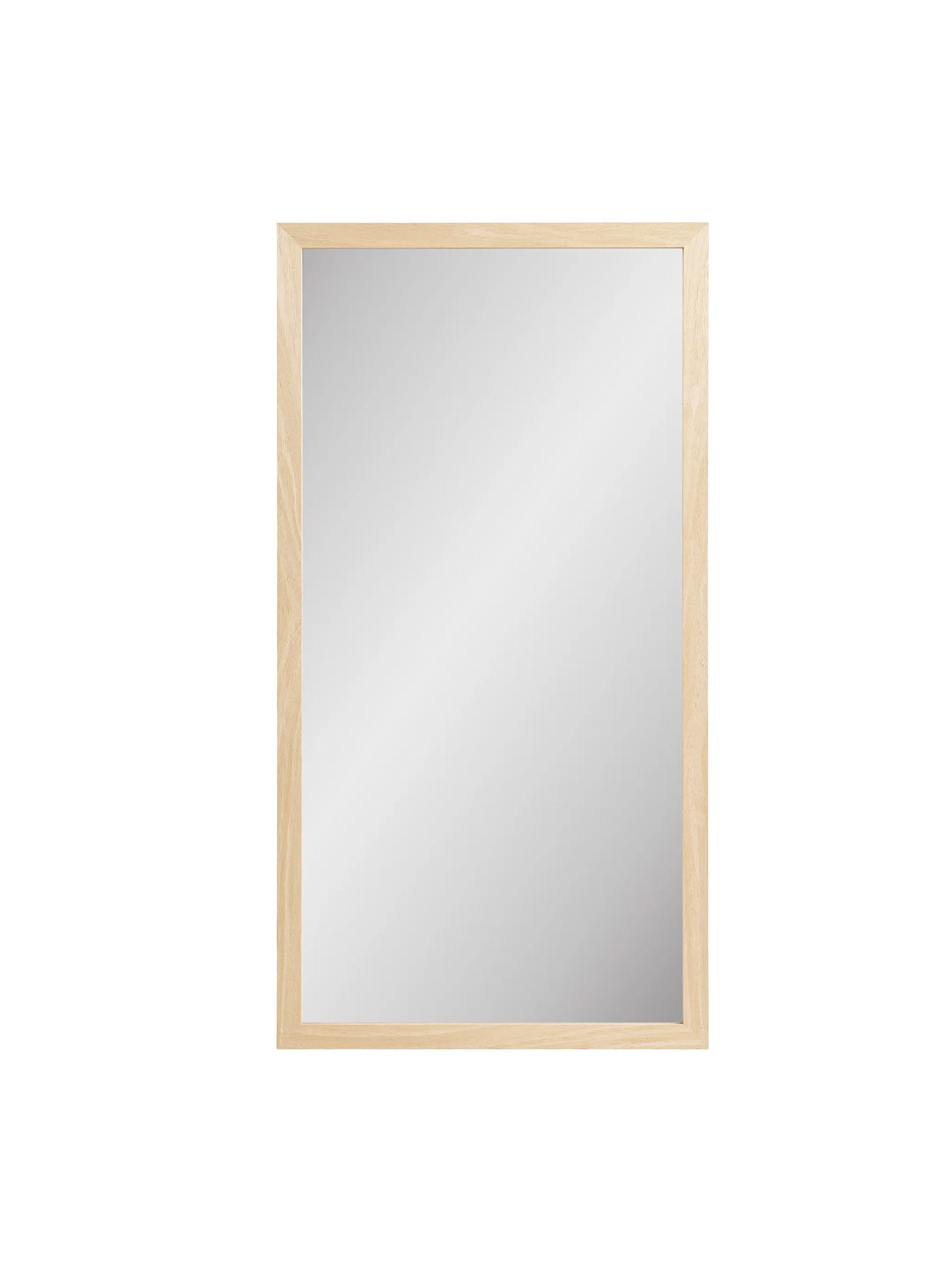 Minimalističko pravokutno ogledalo s natur drvenim okvirom – savršen detalj za svaki zid.
