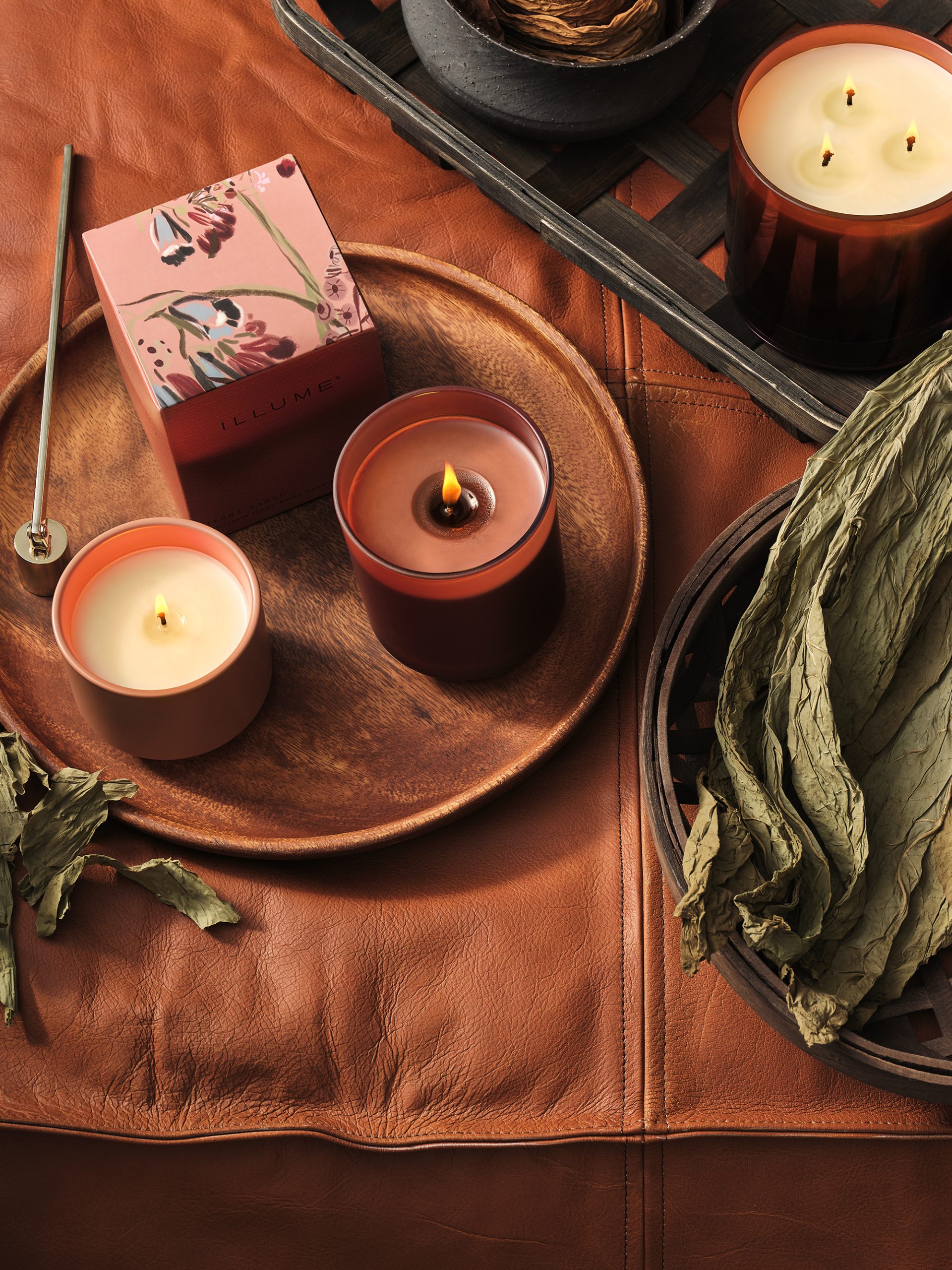 ILLUME staklena svijeća Terra Tabac Box, punjenje za kutiju. Utemeljeno na čistom kašmirskom mošusu, sa srcem od svijetlog duhanskog lista i poljubljeno sunčanom slatkom narančom. Pažljivo dizajnirano od voska do fitilja, postavite svijeće bilo gdje u domu ili uredu. Bezvremenski osnovni proizvod dizajniran s nježnim mraznim završetkom, obojenim voskom i prozirnim podnožjem za dodatnu eleganciju. Nakon što izgorite, ponovno upotrijebite staklo s našim punjenjem za svijeće na biljnoj bazi. Vrijeme gorenja: do 50 sati. Vegansko. Nije testirano na životinjama. Vosak na biljnoj bazi.