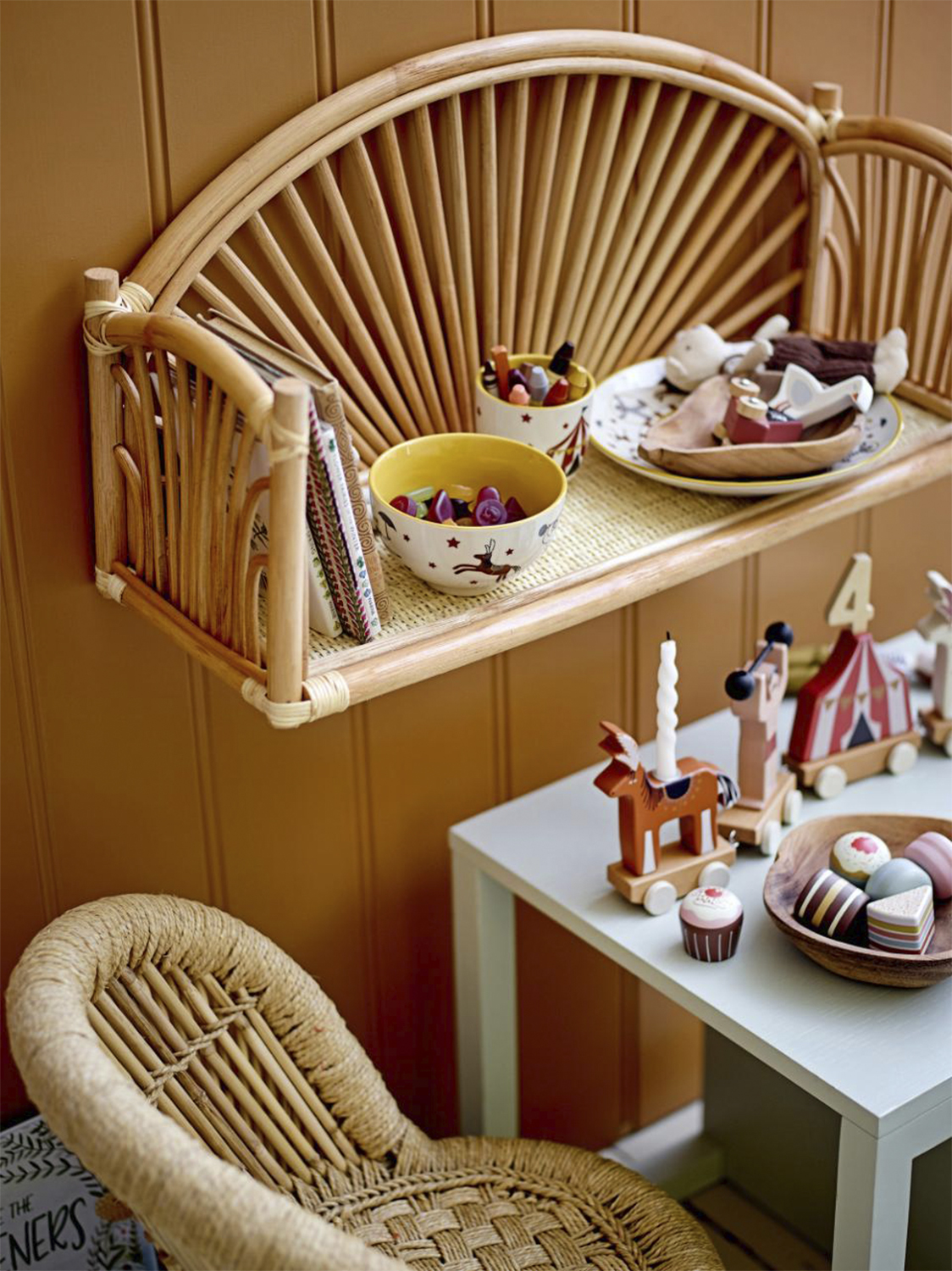| O proizvodu | Prekrasna Kanya polica od ratana dodaje prirodni štih dječjoj sobi. Koristite ga za male knjige ili omiljene ukrasne predmete. |