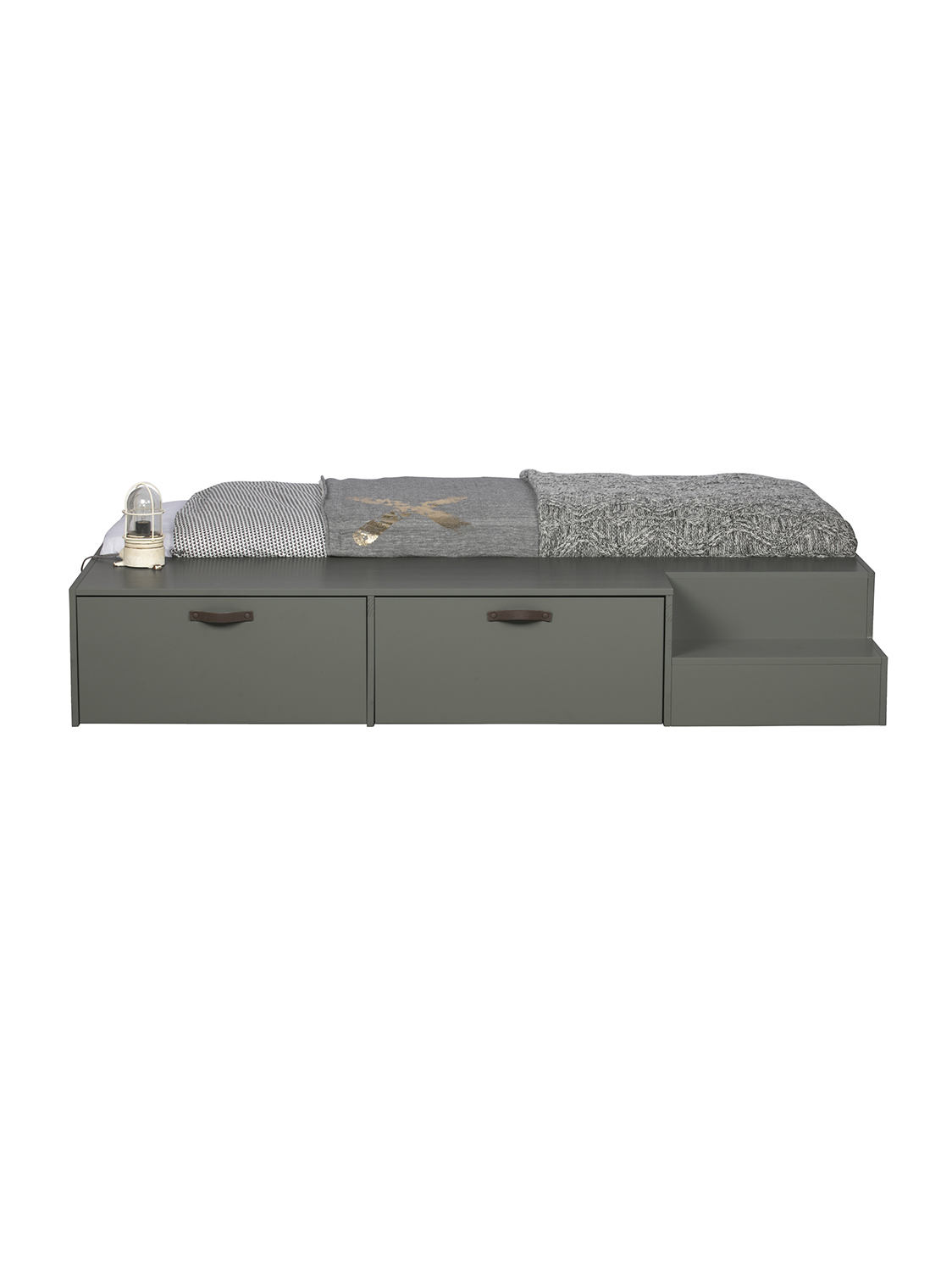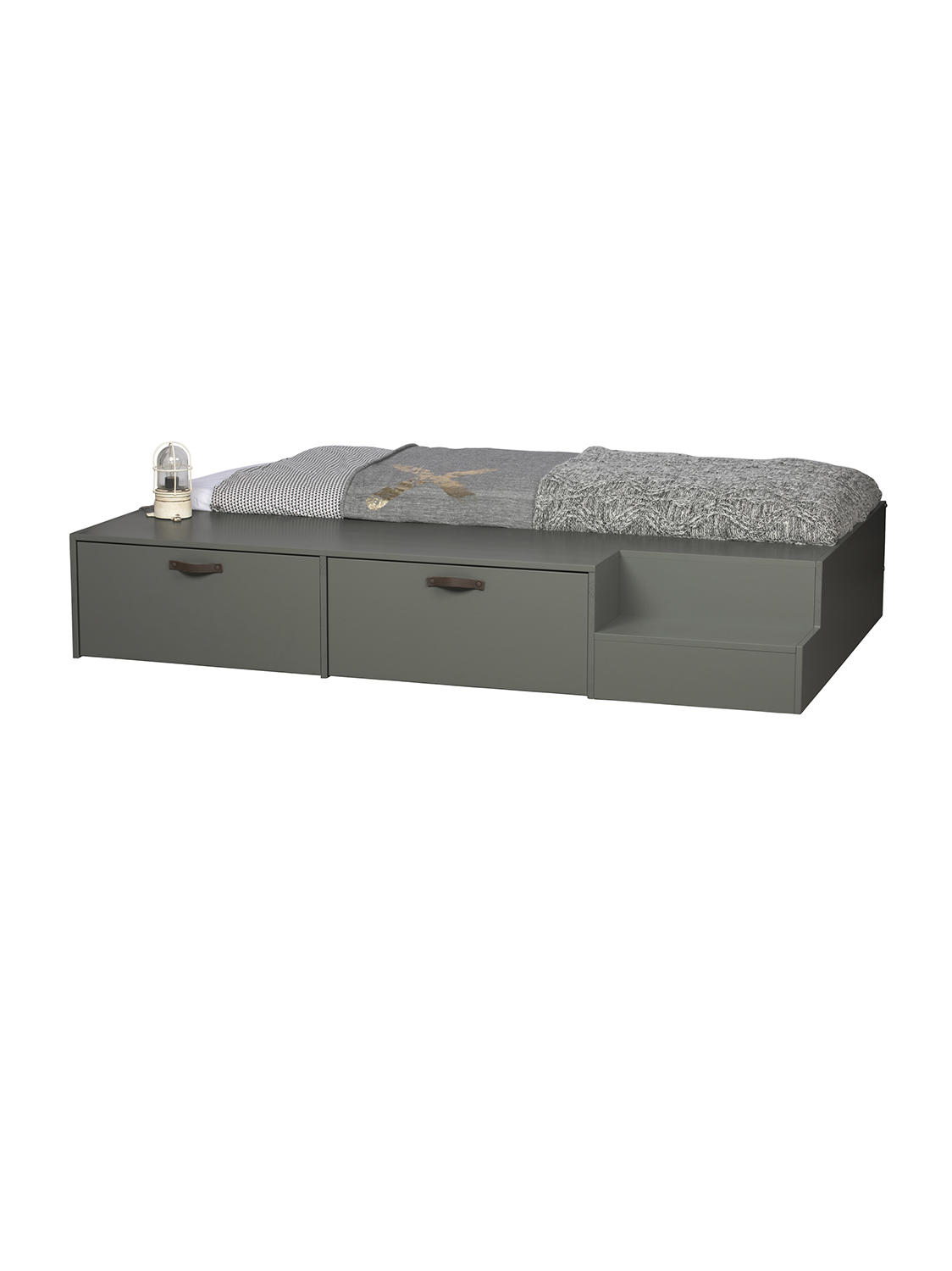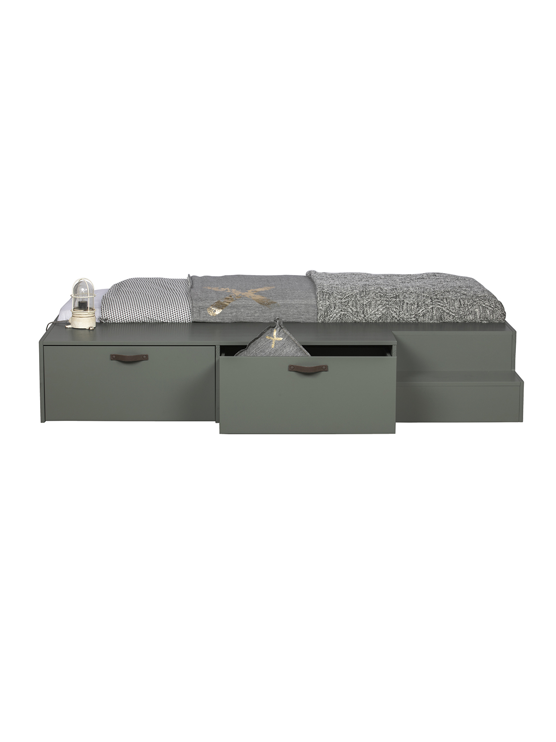 Ovaj Stage krevet (80×200 cm) iz kolekcije nizozemske marke vtwonen robustan je i čvrst. Krevet je izrađen od masivne, FSC certificirane, borovine lakirane u zelenoj sapunskoj nijansi. Dvije dodatne odgovarajuće ladice za krevet sa smeđim kožnim ručkama čine Stage potpunim. Dodatni prostor za pohranu u dječjoj sobi uvijek je dobra ideja.