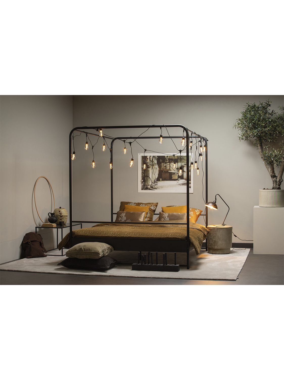 Okvir je izrađen od čelika koji je premazan crnim prahom. Letvičasti okvir izrađen je od metala. Krevet je dostupan u tri različite veličine (VxŠxD): 190x206x95 cm (veličina madraca 90×200 cm), 190x206x125 cm (veličina madraca 120×200 cm) i 190x206x165 (veličina madraca 160×200 cm). Krevet se isporučuje bez madraca.