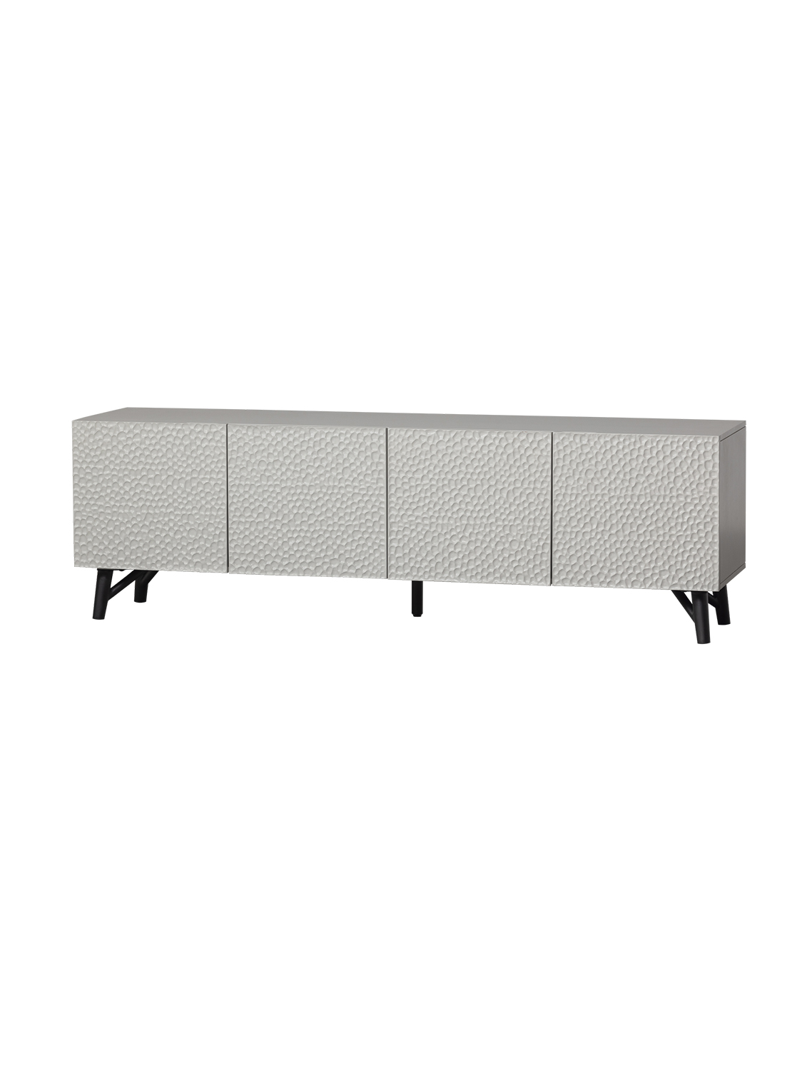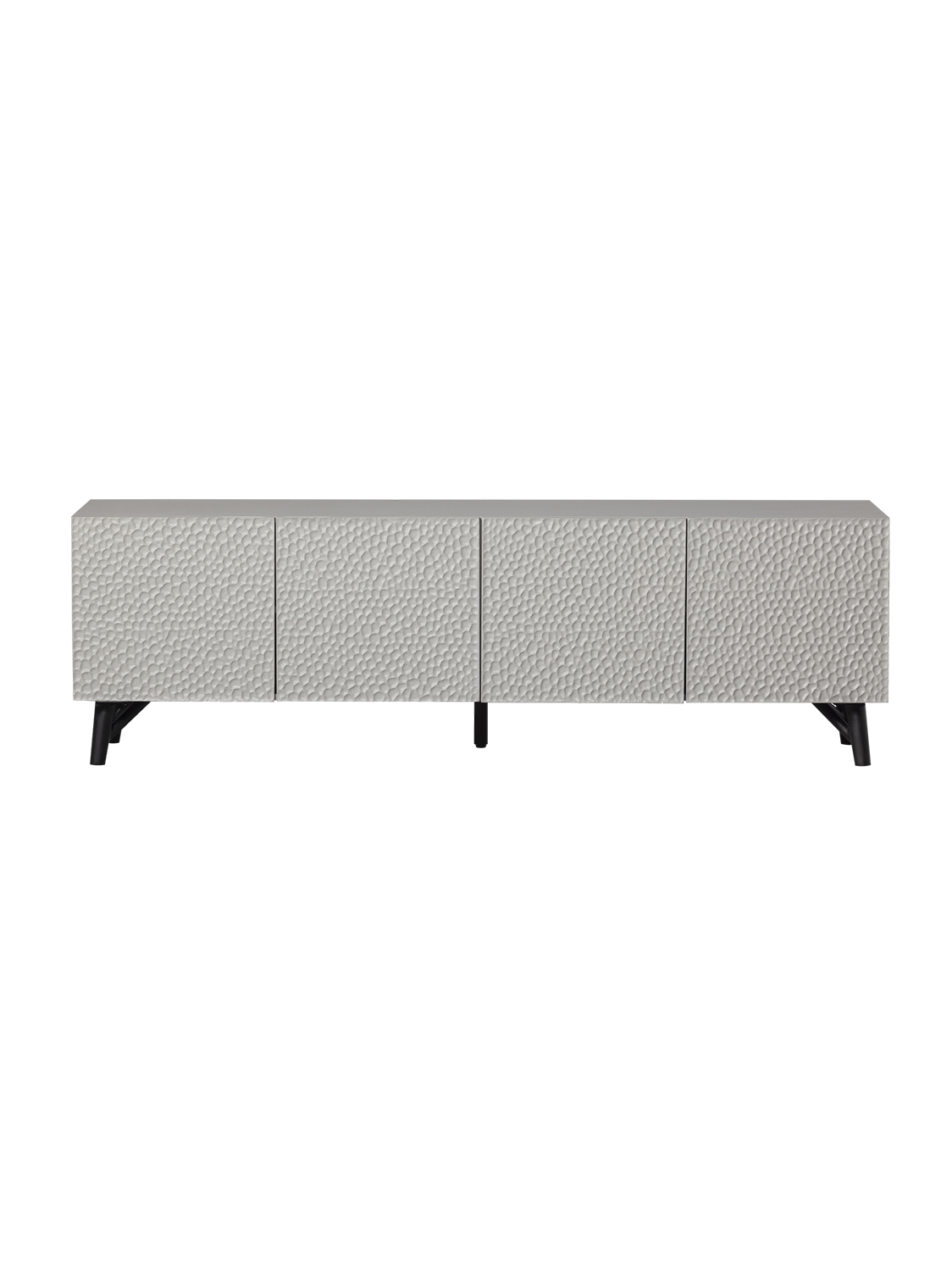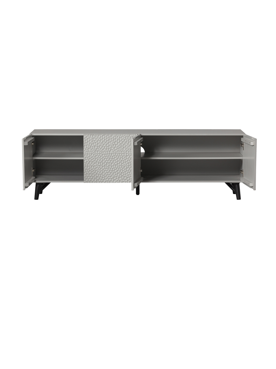 Rezbareni TV ormarić visok je 56 cm, širok 181 cm i dubok 46 cm. Četvora su vrata visoka 41 cm i široka 44 cm. Iza vrata nalaze se četiri velika pretinca za pohranu, svaki širok 88 cm i visok 19 cm. Svaka polica ima nosivost od 15 kg kada je ravnomjerno raspoređena. Okrugli otvor na stražnjoj strani omogućuje izvođenje kabela iz sva četiri odjeljka. Gornji dio može izdržati do 50 kg kada je ravnomjerno raspoređen. Noge su visoke 15 cm.