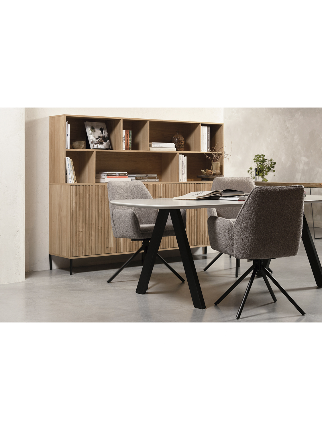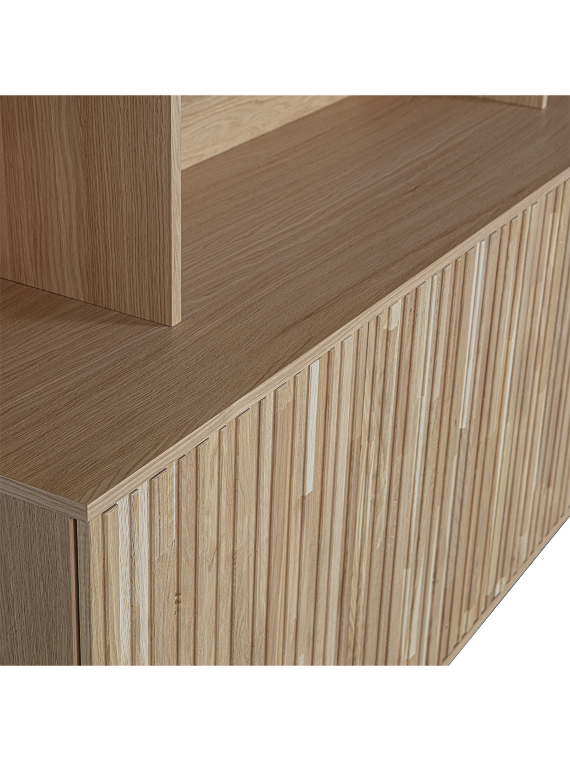 Elegantna komoda za vaše najfinije dekoracije.Izložite svoje najljepše predmete za dom u ormarić u pretinac i otkrijte more prostora za pohranu iza reljefnih vrata. Materijal Hrast je prirodan materijal koji volimo isticati, karakteristični uzorci zrna različiti su u svakom artiklu. Stoga je svaki New Gravure jedinstven.
