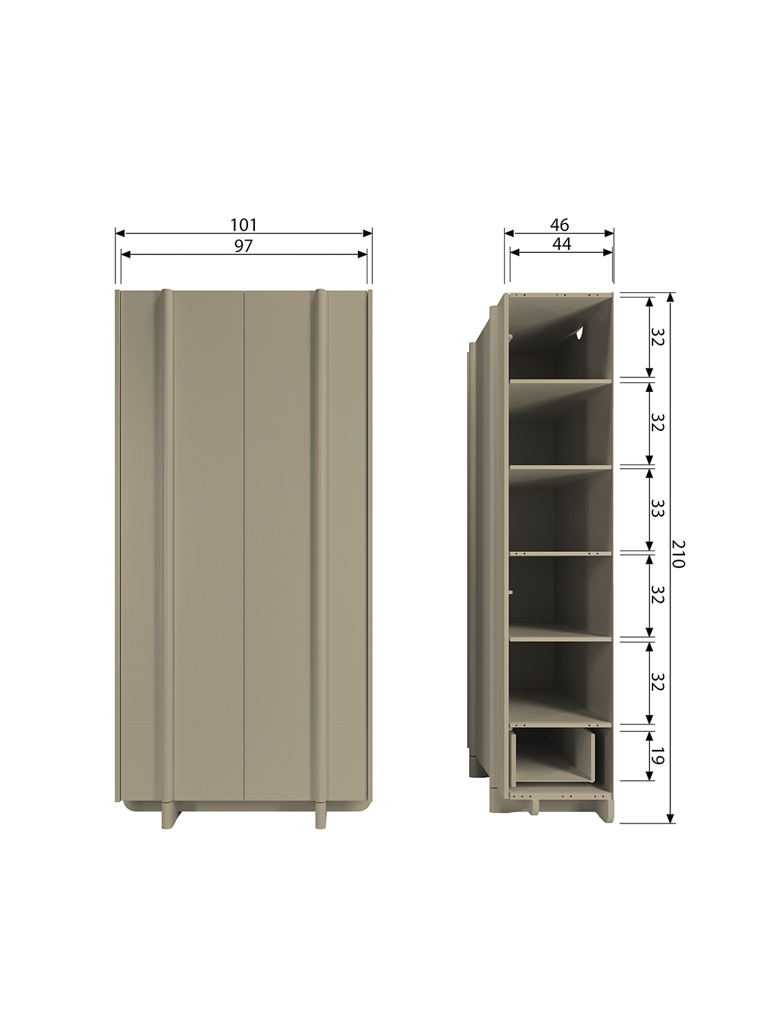 Unesite jedinstvenu kreaciju ormarića u svoj dom s ovom Basu serijom. Basu dolazi iz Exclusive kolekcije nizozemskog brenda za dizajn interijera WOOOD i ističe se svojim razigranim linijama, mat prirodnim tonovima i bezvremenskim skandinavskim dizajnom. Kolekcija Basu razigrano je sastavljena u opcijama boja, verzijama ormarića i opciji proširenja stilskih gornjih presvlaka u betonskom dekoru. Na taj način personalizirate svoj Basu po svom ukusu!