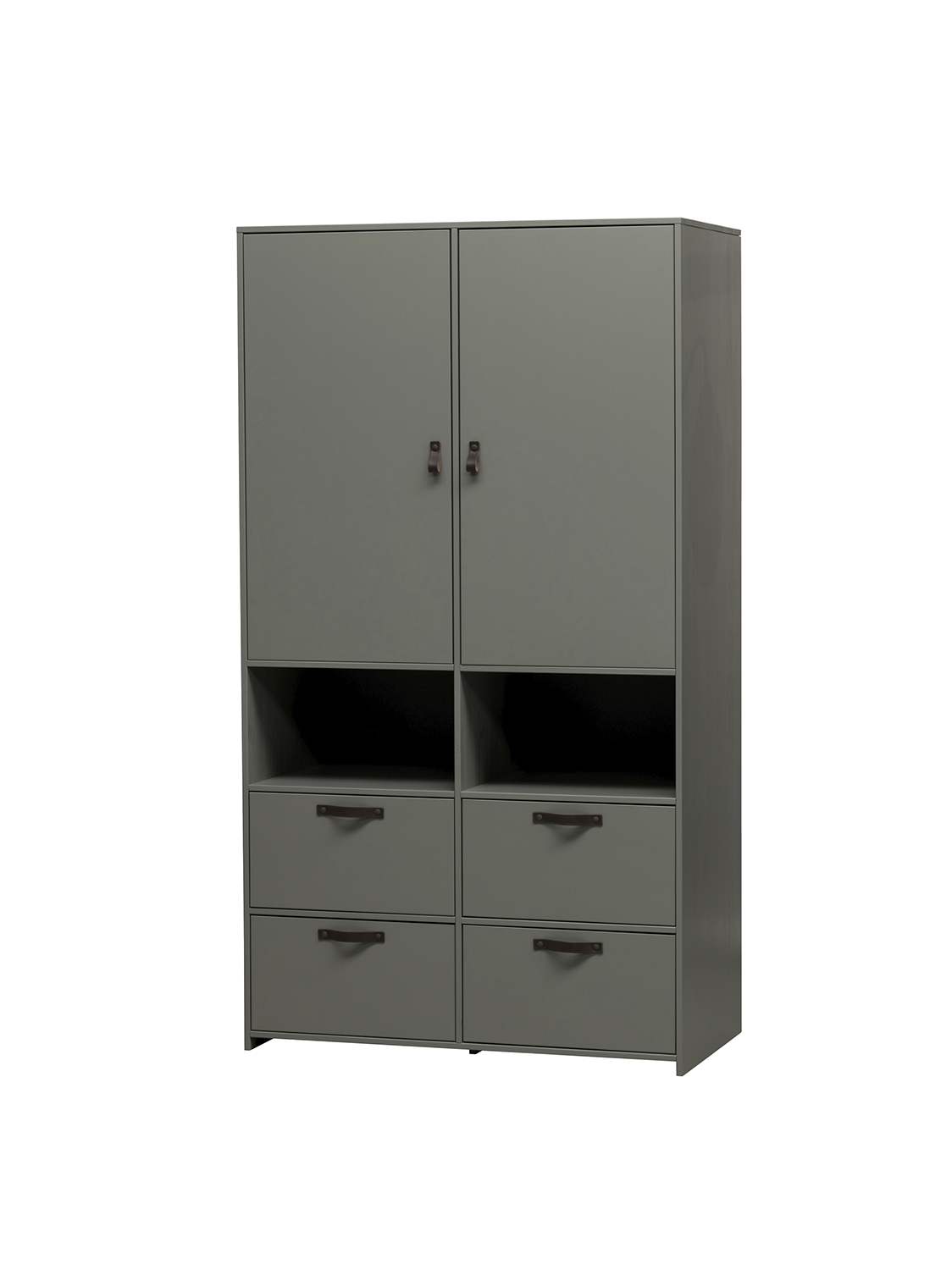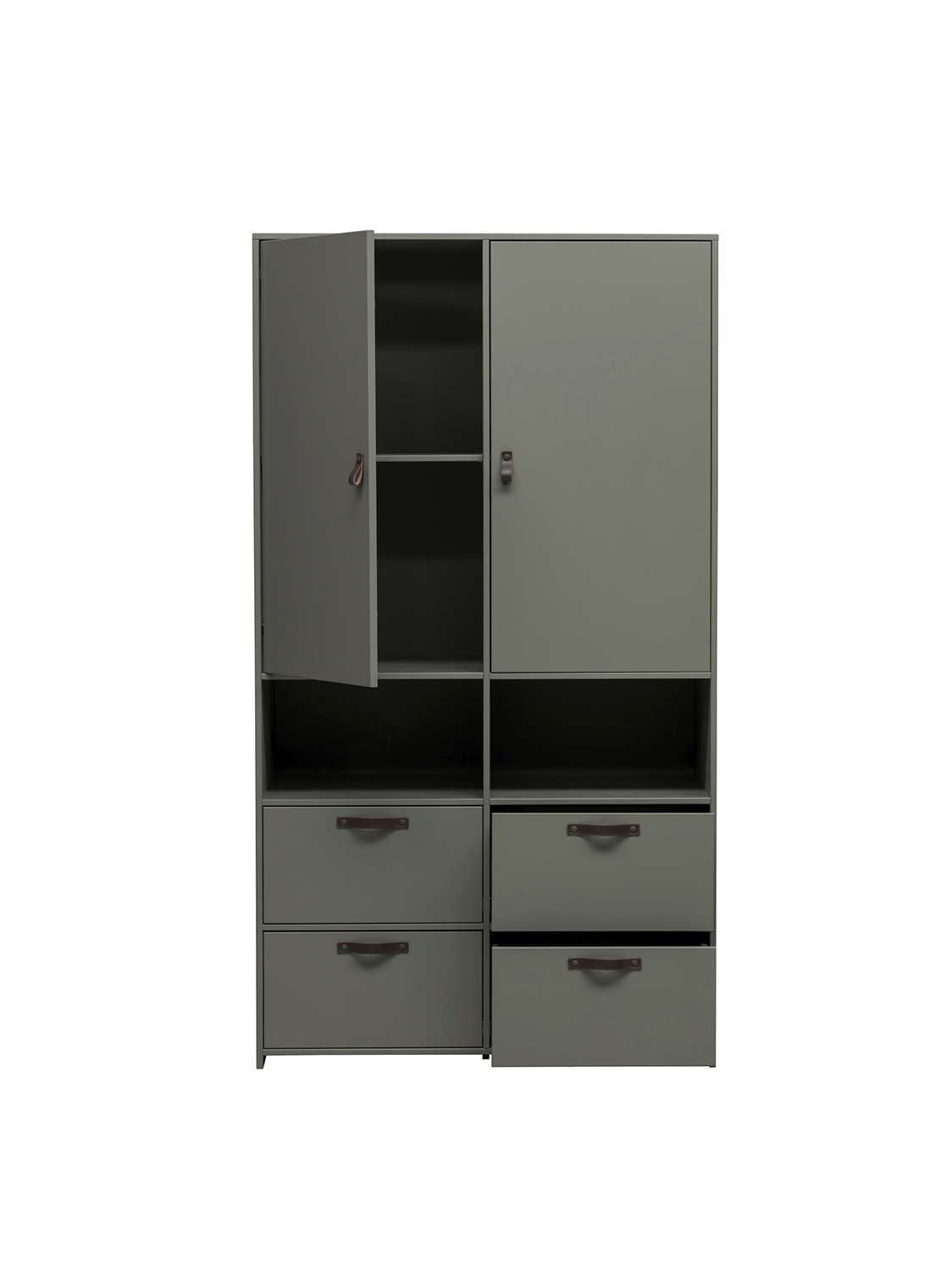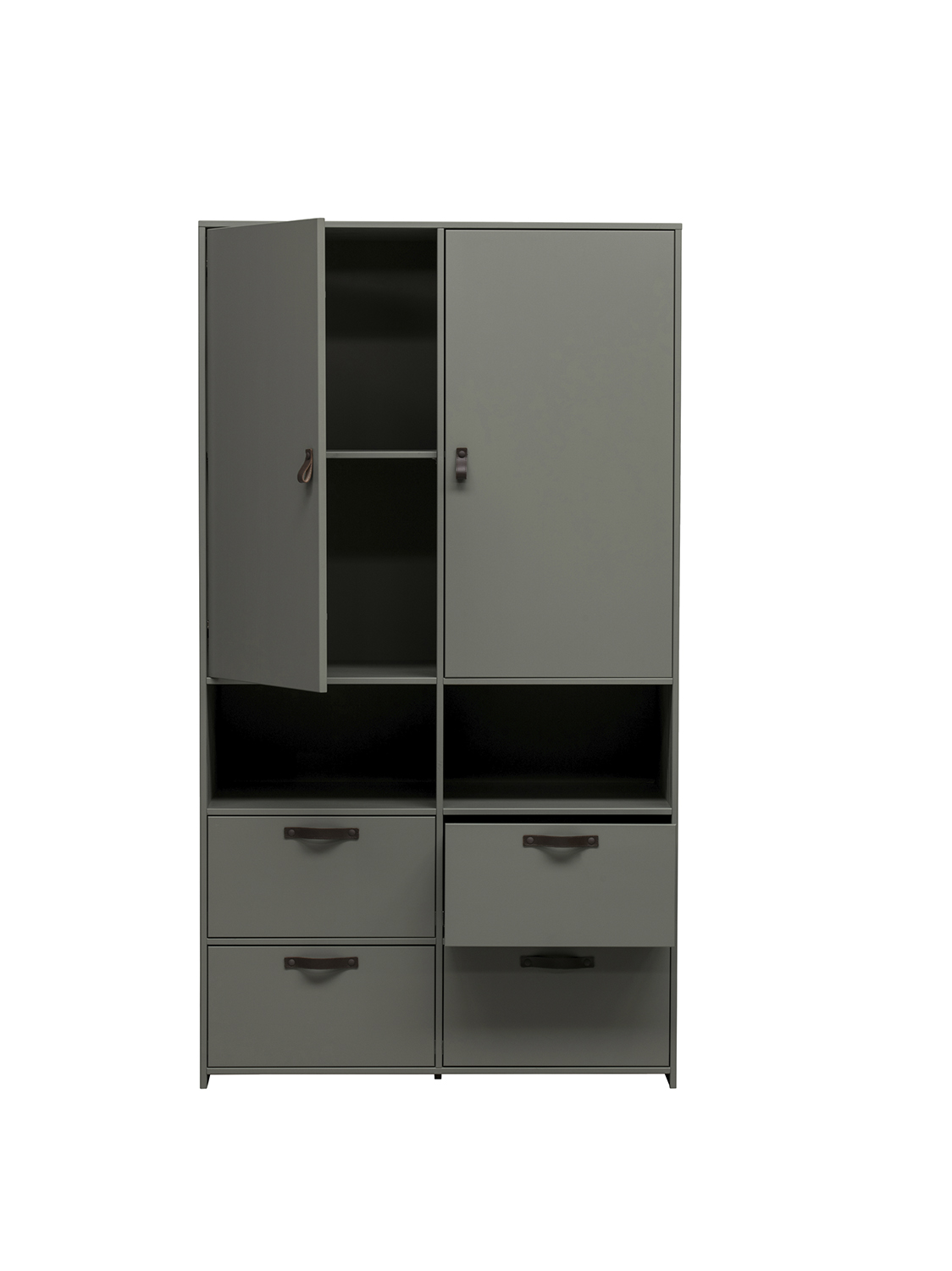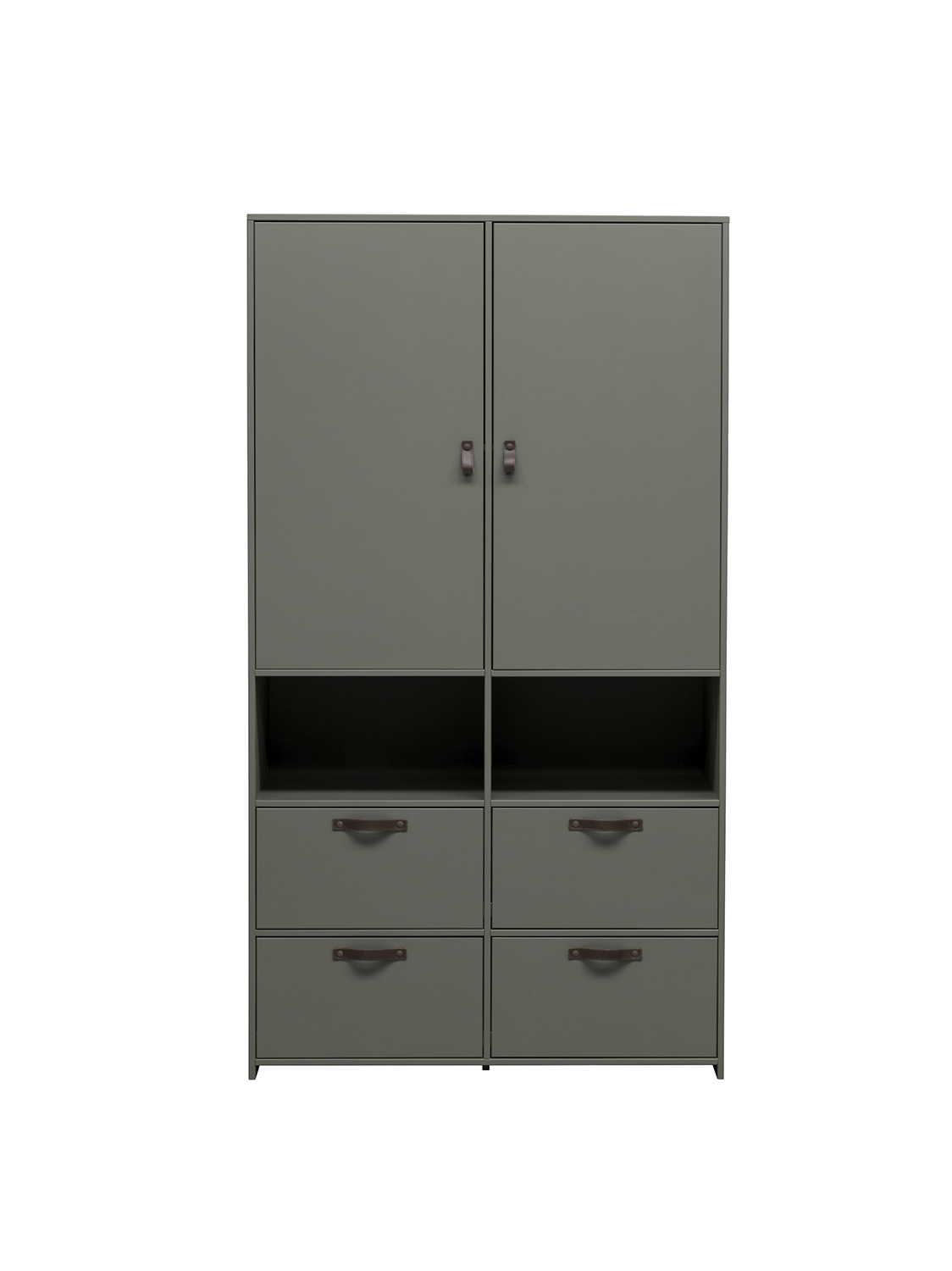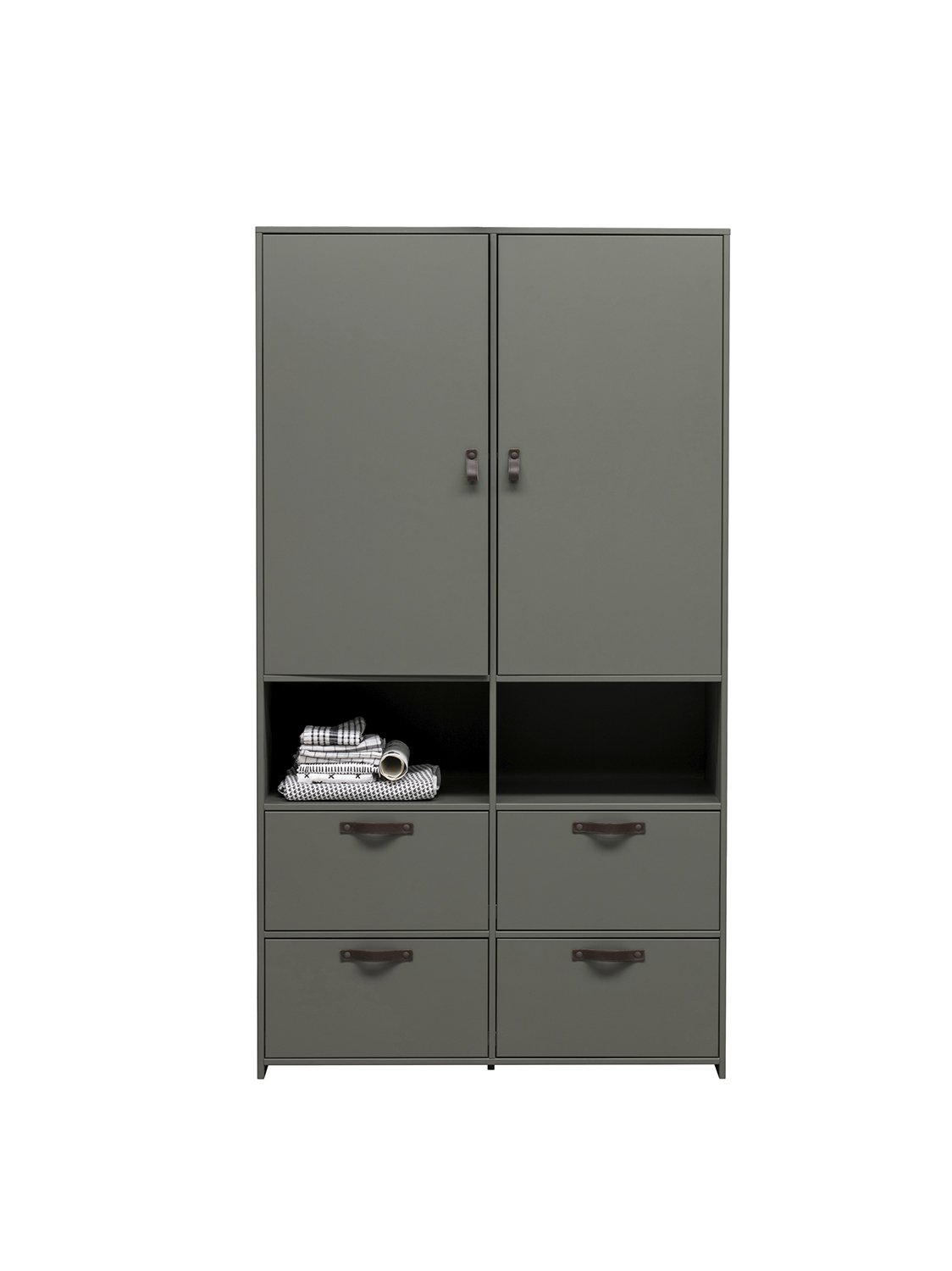 Ovaj Stage ormar iz kolekcije nizozemskog brenda vtwonen je moderan i praktičan te ima čvrst izgled. Ormar je izrađen od masivne, FSC certificirane, borovine lakirane u zelenu sapunsku nijansu i ima smeđe kožne ručke. Dva otvorena odjeljka (V 26 cm) u ormariću daju malo razigranosti.