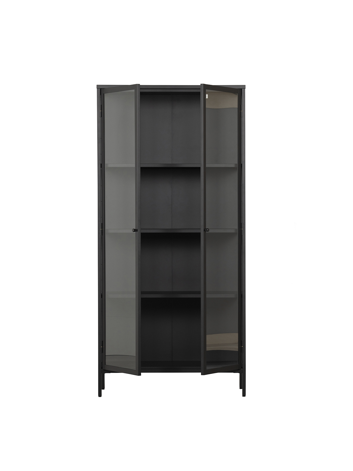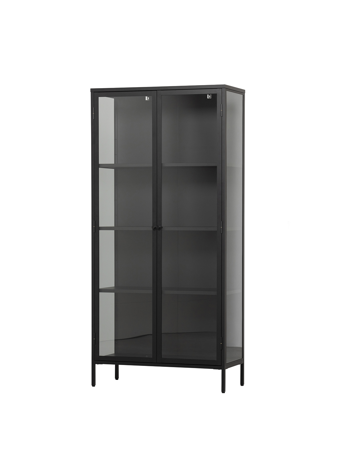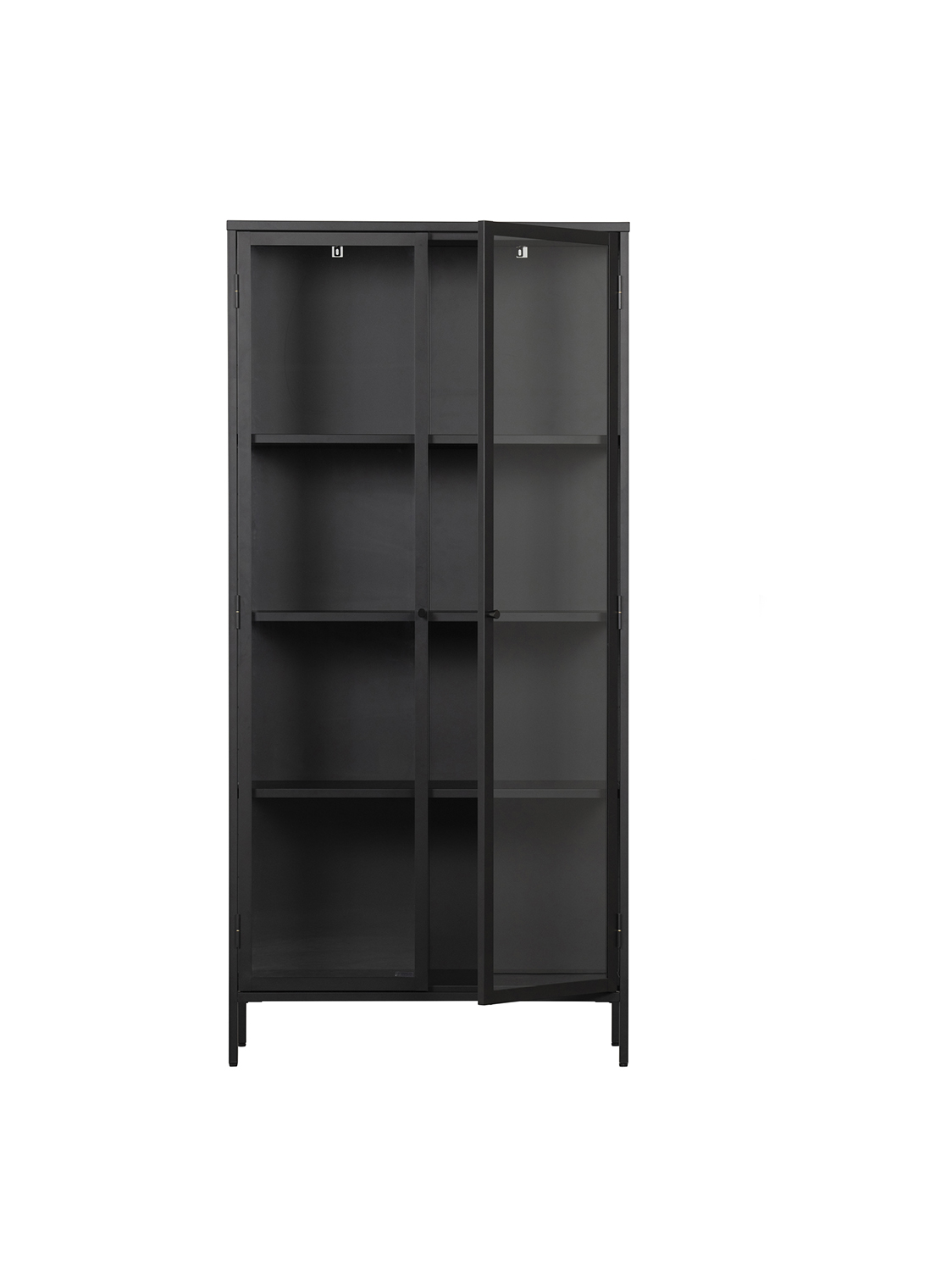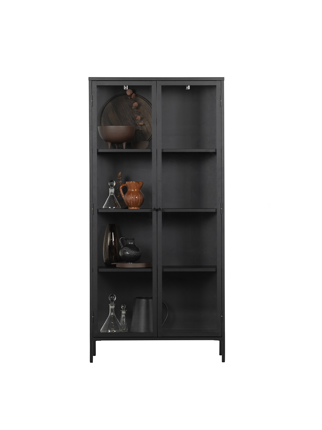 Ova Precious vitrina je iz kolekcije nizozemskog brenda vtwonen. Vitrina je opremljena prozirnim staklom s tri strane, što je čini savršenom izlogom za Vaše najljepše interijerske dodatke!Crno željezo mat izgleda – S četiri police.