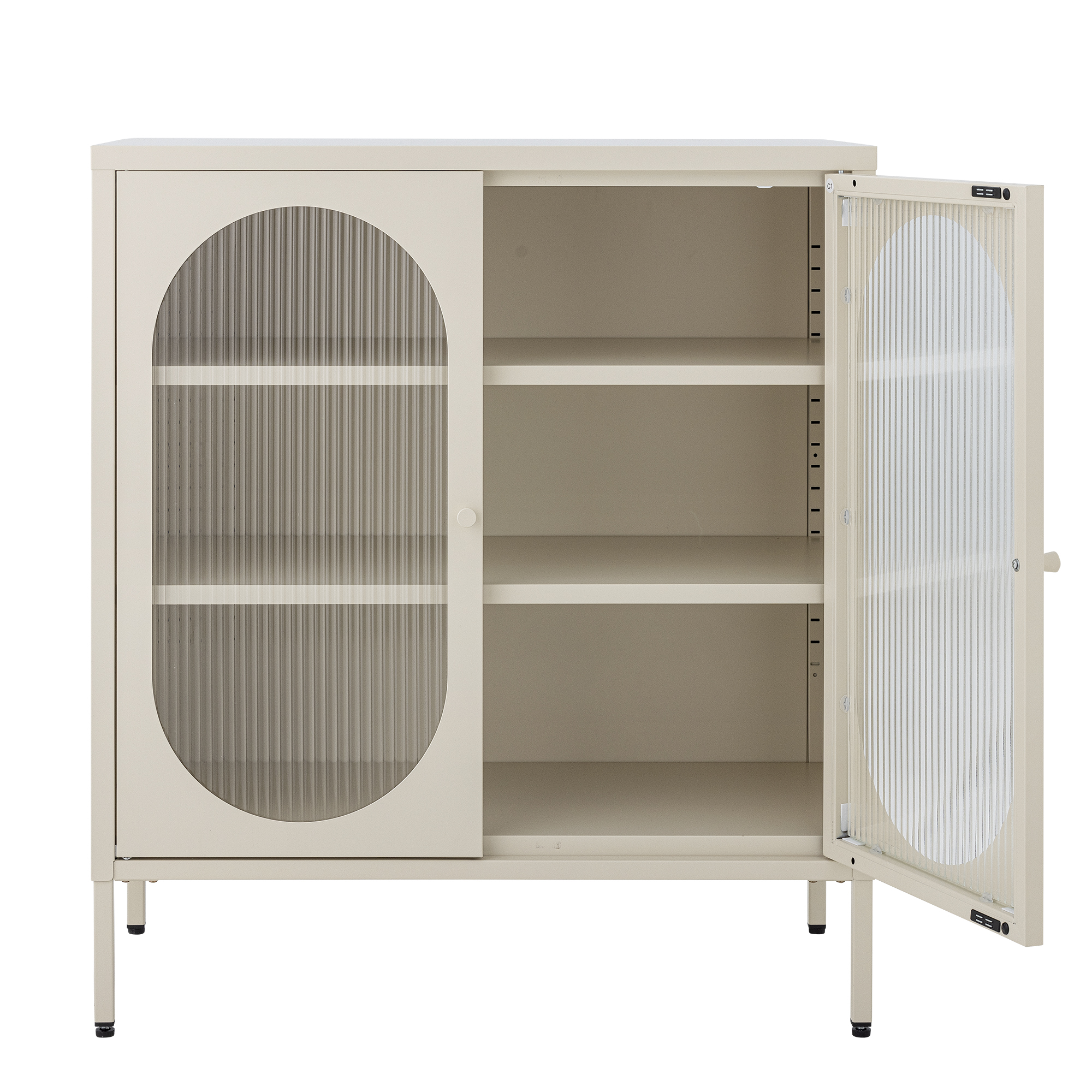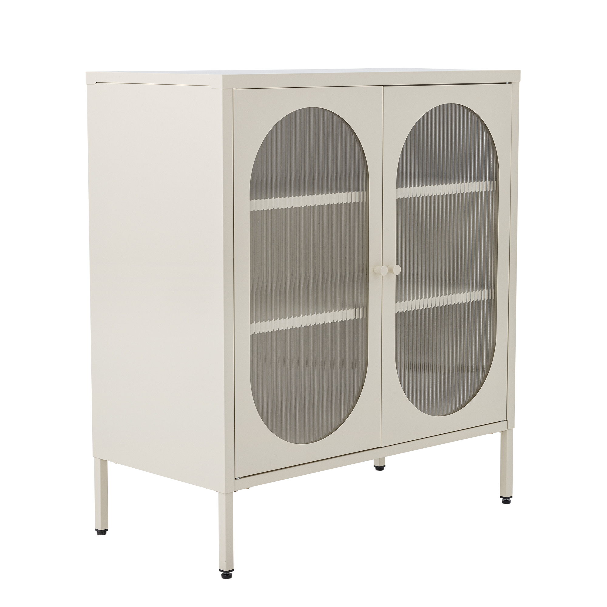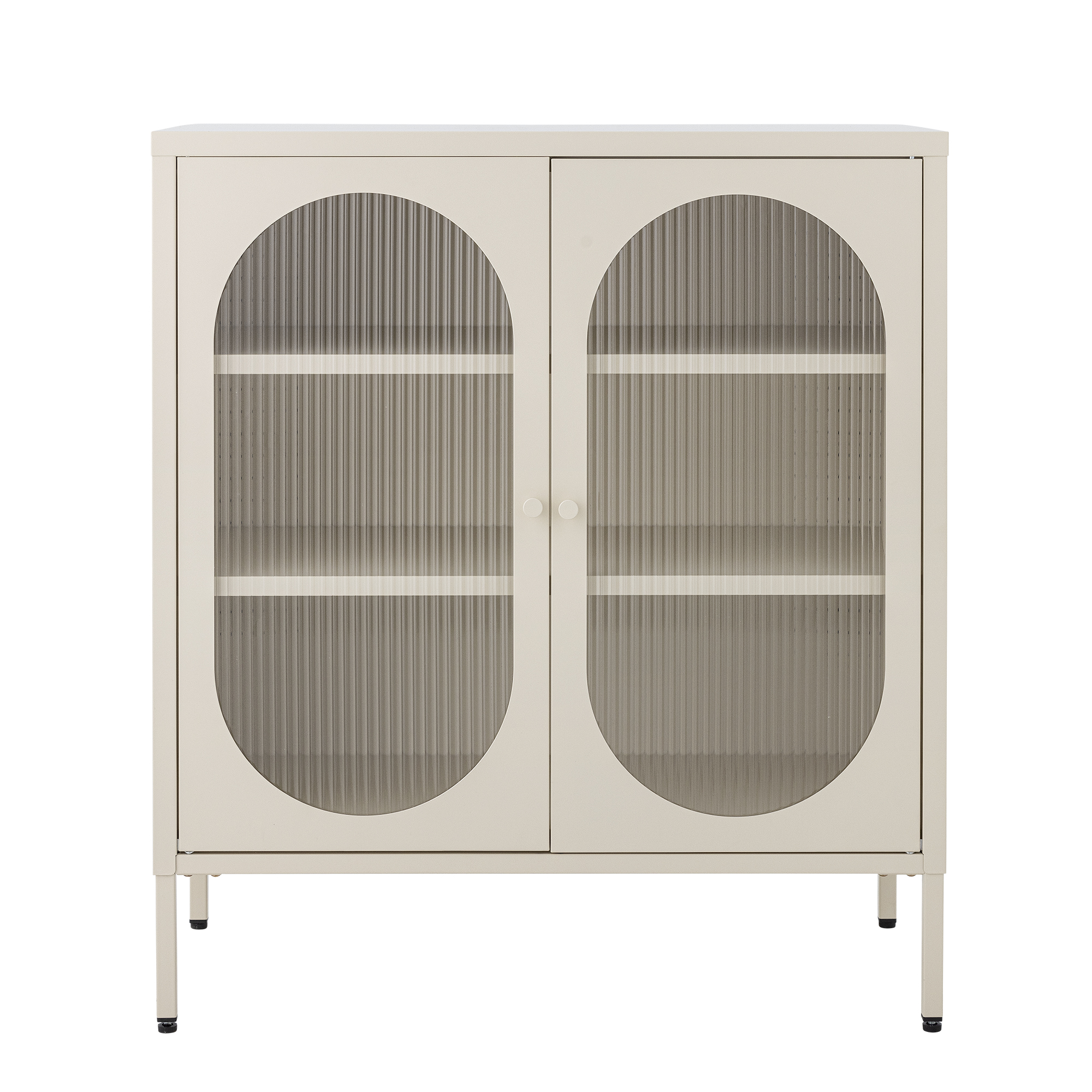Salvo kabinet tvrtke Bloomingville prekrasan je metalni ormarić u nježnoj boji pijeska koji svakoj prostoriji dodaje eleganciju. Dvoja vrata ormarića imaju ukrasne detalje od rebrastog stakla. S praktičnim policama, ovaj ormarić idealan je za pohranu i izlaganje, savršeno se uklapajući u dnevni boravak, blagovaonicu ili ulazni hodnik.