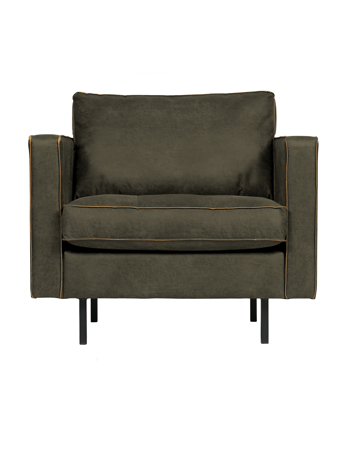 Fotelja Rodeo nizozemskog brenda BePureHome je moderna, prostrana i nudi izvanredno čvrstu udobnost sjedenja.Presvučena je recikliranom kožom (70% koža / 30% poliester).
