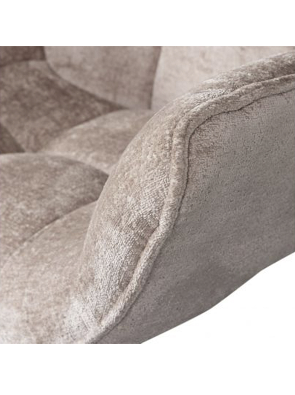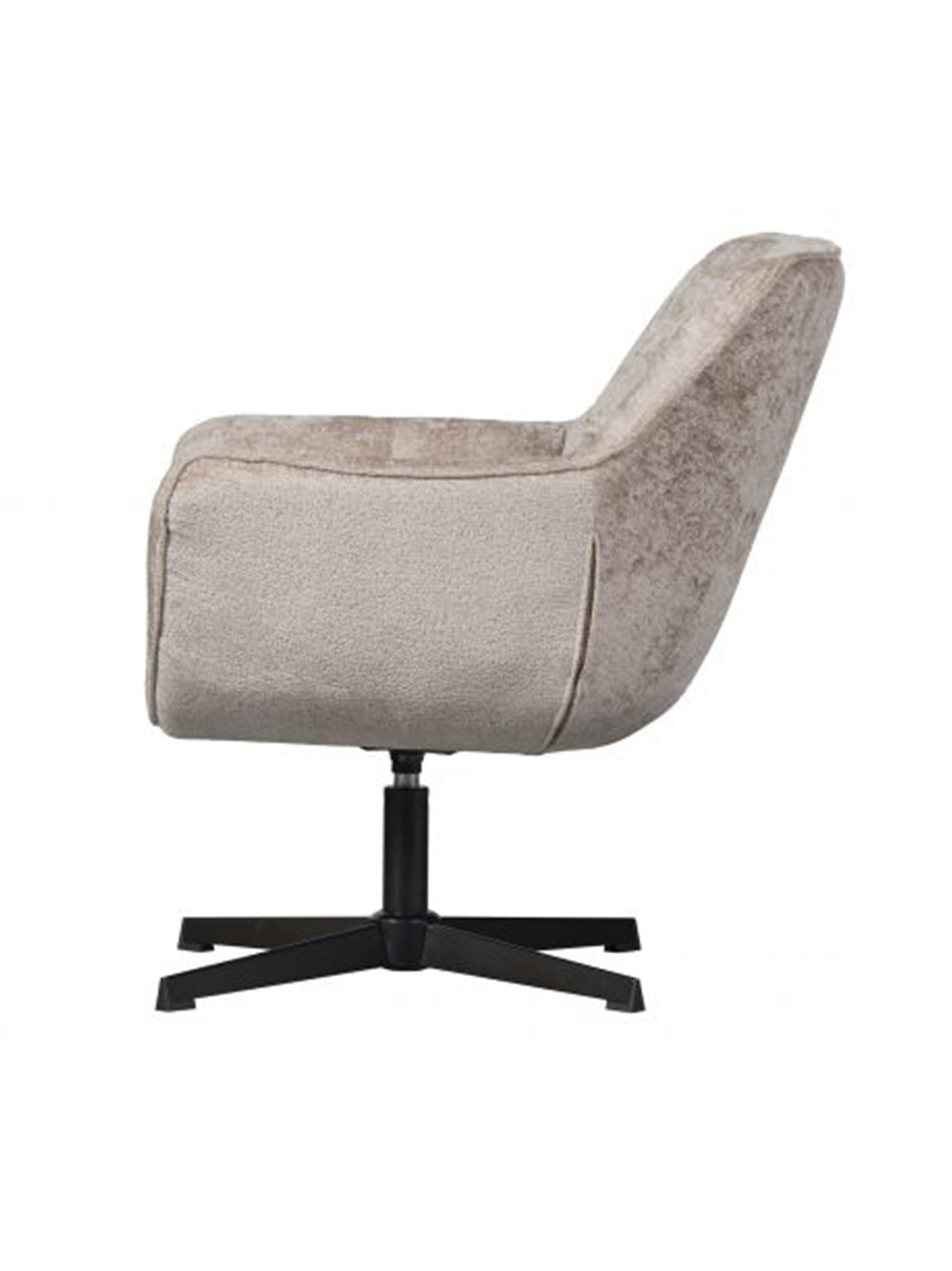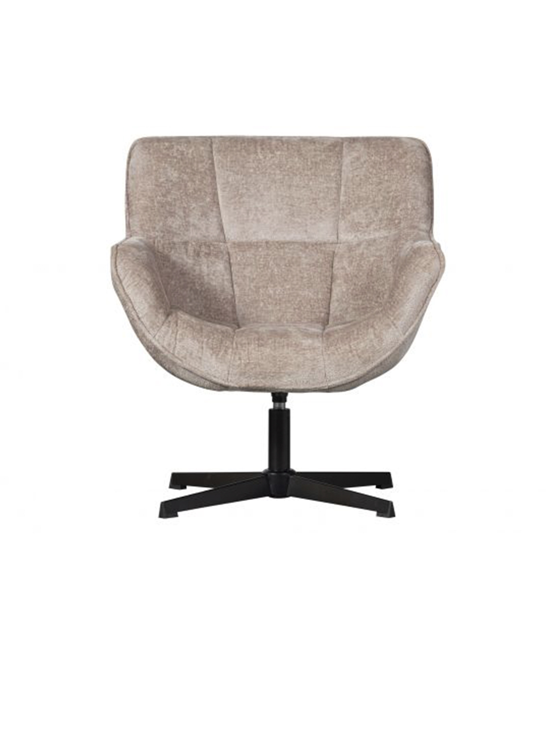 Okretna fotelja koja privlači poglede i lako se uklapa u svaki stil interijera. Okretna baza olakšava ulazak i izlazak, a stolica također ima naslone za ruke za dodatnu udobnost. Presvučena tkaninom od šenila (100% poliester).