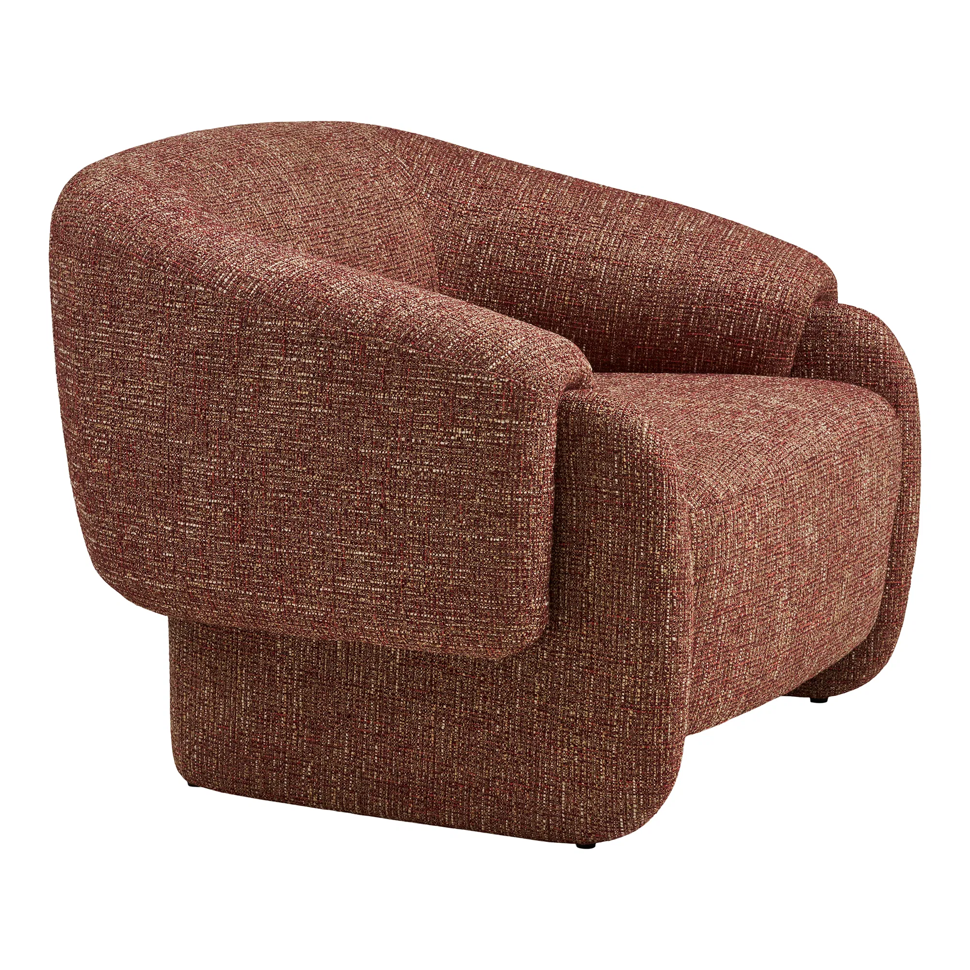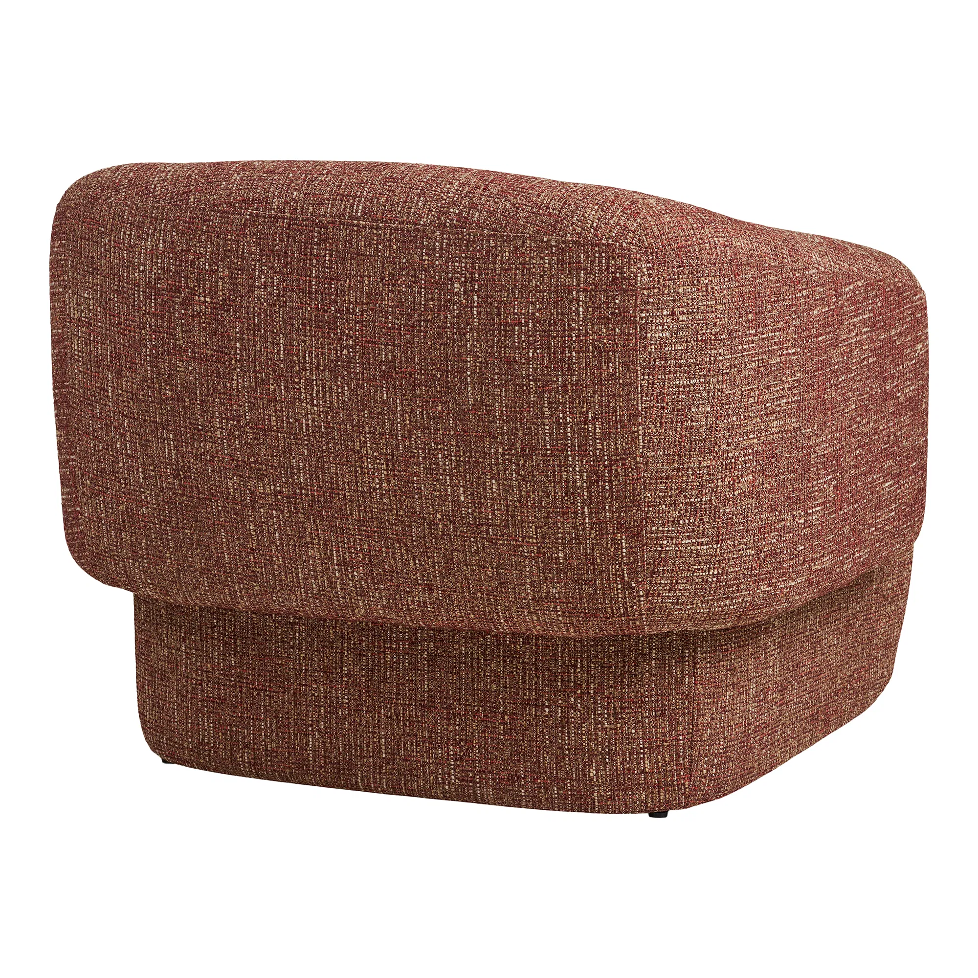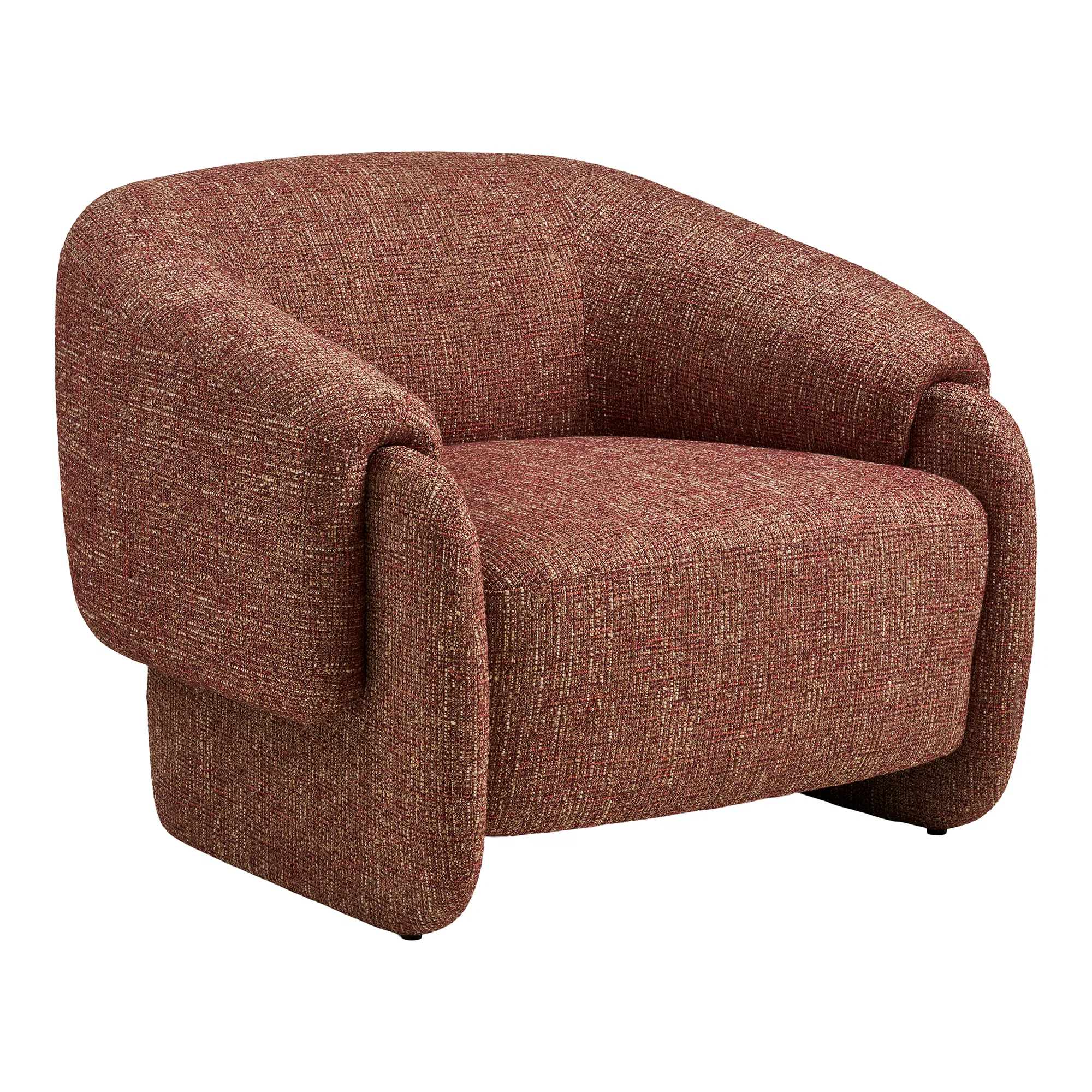Fotelja modernog dizajna u toploj smeđe-crvenoj nijansi donosi udobnost i eleganciju u svaki prostor. Zaobljeni nasloni za ruke i široko sjedalo pružaju maksimalnu udobnost, dok kvalitetna teksturirana tkanina osigurava dugotrajnost. Idealan izbor za dnevni boravak, ured ili kutak za opuštanje.