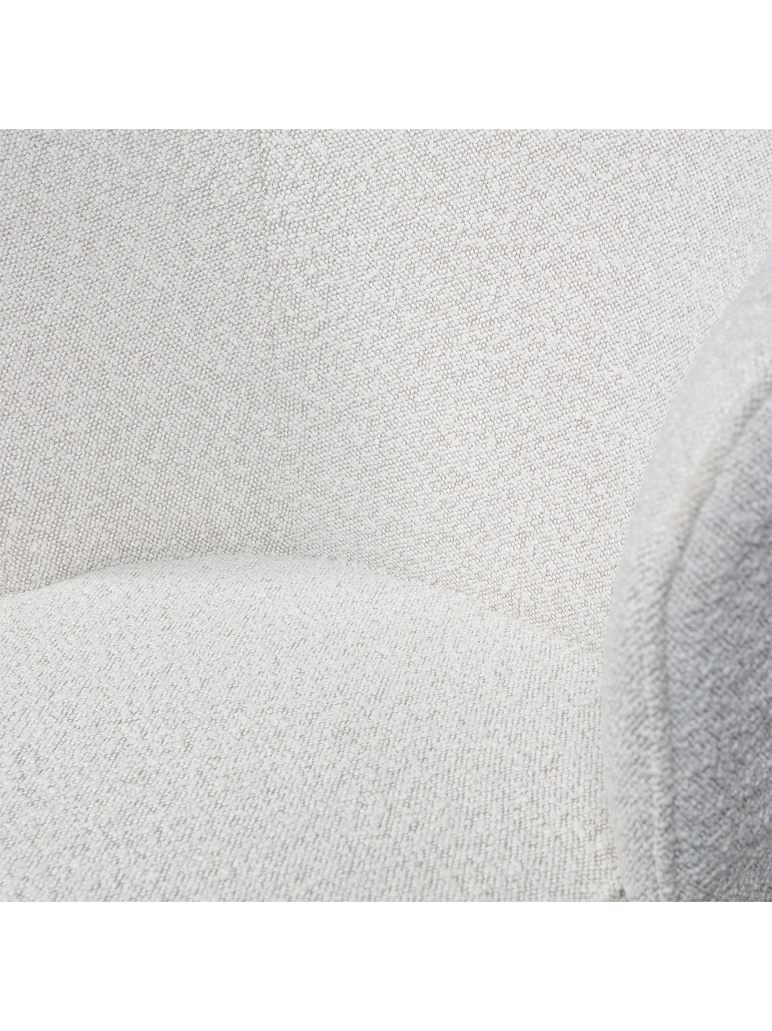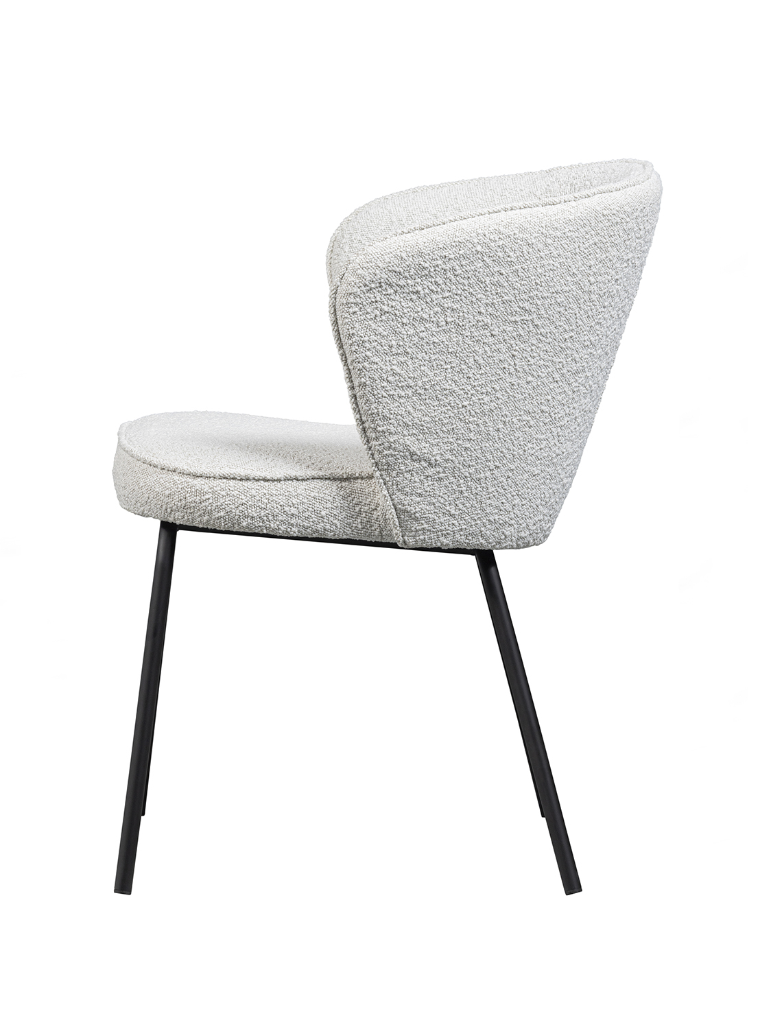 Baza je izrađena od mat crnog metala, što blagovaonskoj stolici daje bezvremenski izgled. Sjedalo je presvučeno našom mekom Colmar bouclé tkaninom. Materijal Colmar bouclé tkanine odgovara najnovijem trendu: meki materijali. Tkanina je mekana i elegantne teksture koja odmah unosi toplinu u vaš dom. Naša Colmar bouclé tkanina ima Martindale 100 000, što znači da je prikladna za intenzivnu upotrebu. Gusto tkanje osigurava čvrstoću tkanine, zbog čega je malo vjerojatno da će se bouclé istrošiti ili pocijepati. Svaka boja također ima visoku postojanost boje, no preporuča se izbjegavati izravnu sunčevu svjetlost kako bi se izbjegle nijanse boja.
