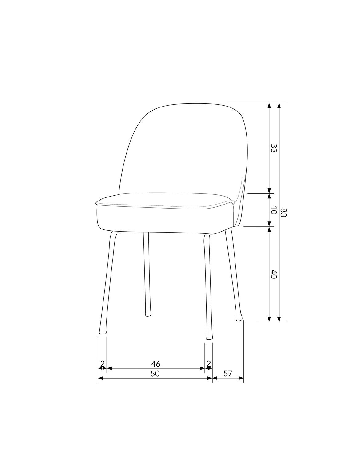 Blagovaonska stolica Vogue ima ukupnu visinu od 83 cm, ukupnu širinu od 50 cm i dubinu od 57 cm. Visina sjedala je 50 cm, a dubina sjedala 45 cm. Širina sjedala je 50 cm. Svaka četiri noge imaju visinu od 40 cm i promjer od 2 cm.