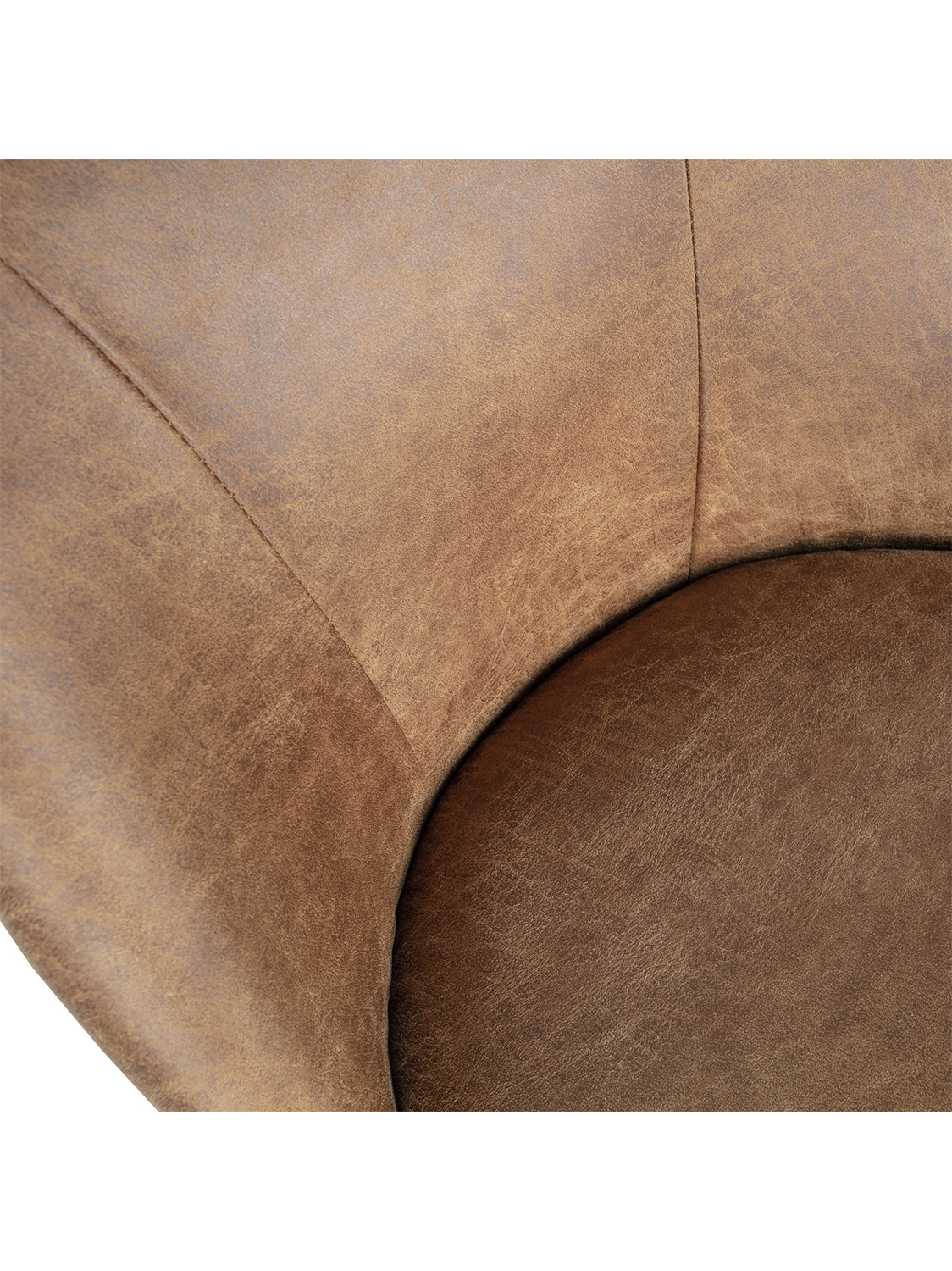 Elegantan stolac sa izgledom kože sastoji se od 70% vlakana goveđe kože, 30% poliestera i ima Martindale od 30.000. Modernog je okruglog oblika a sjedalo je izrađeno od elastičnih traka i pjene te pruža udobnost sjedenja koja može trajati satima.