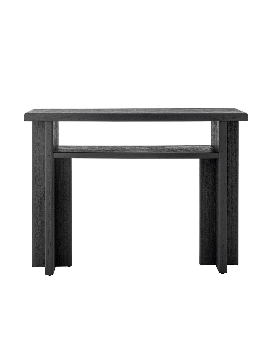 Konzolni stolić Cupa tvrtke Bloomingville elegantni je konzolni stolić izrađen od crnog bora sa sjajnom lakiranom završnom obradom. Stol ima moderan dizajn s malom policom za pohranu važnih predmeta. Zbog toga je savršen za ulazni prostor, dnevni boravak ili bilo koji prostor gdje je potrebno diskretno mjesto za pohranu malih stvari.