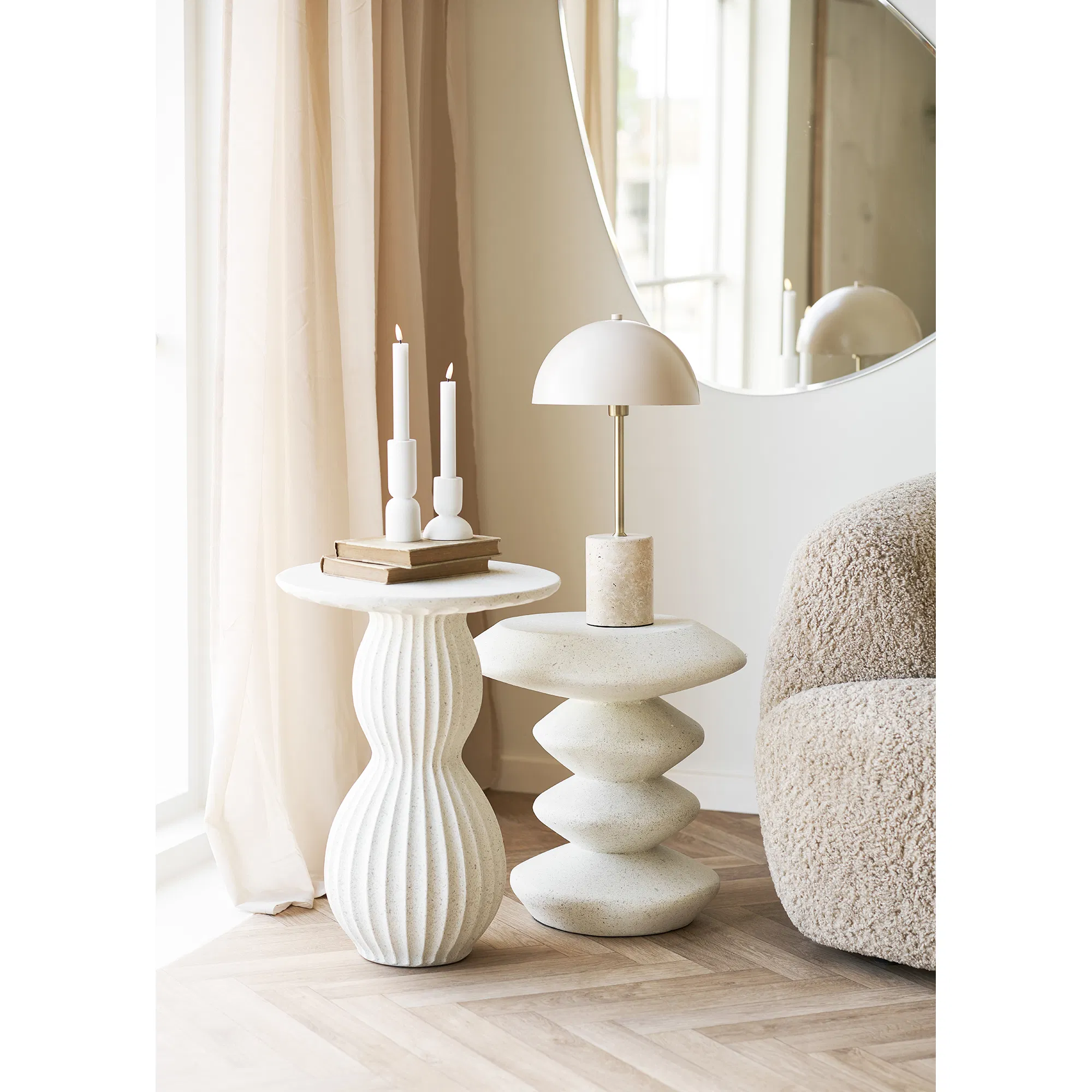 Moderan stolić u bijeloj boji donosi prirodnu eleganciju i jedinstvenu strukturu u svaki prostor.Ručno izrađen i vizualno upečatljiv.