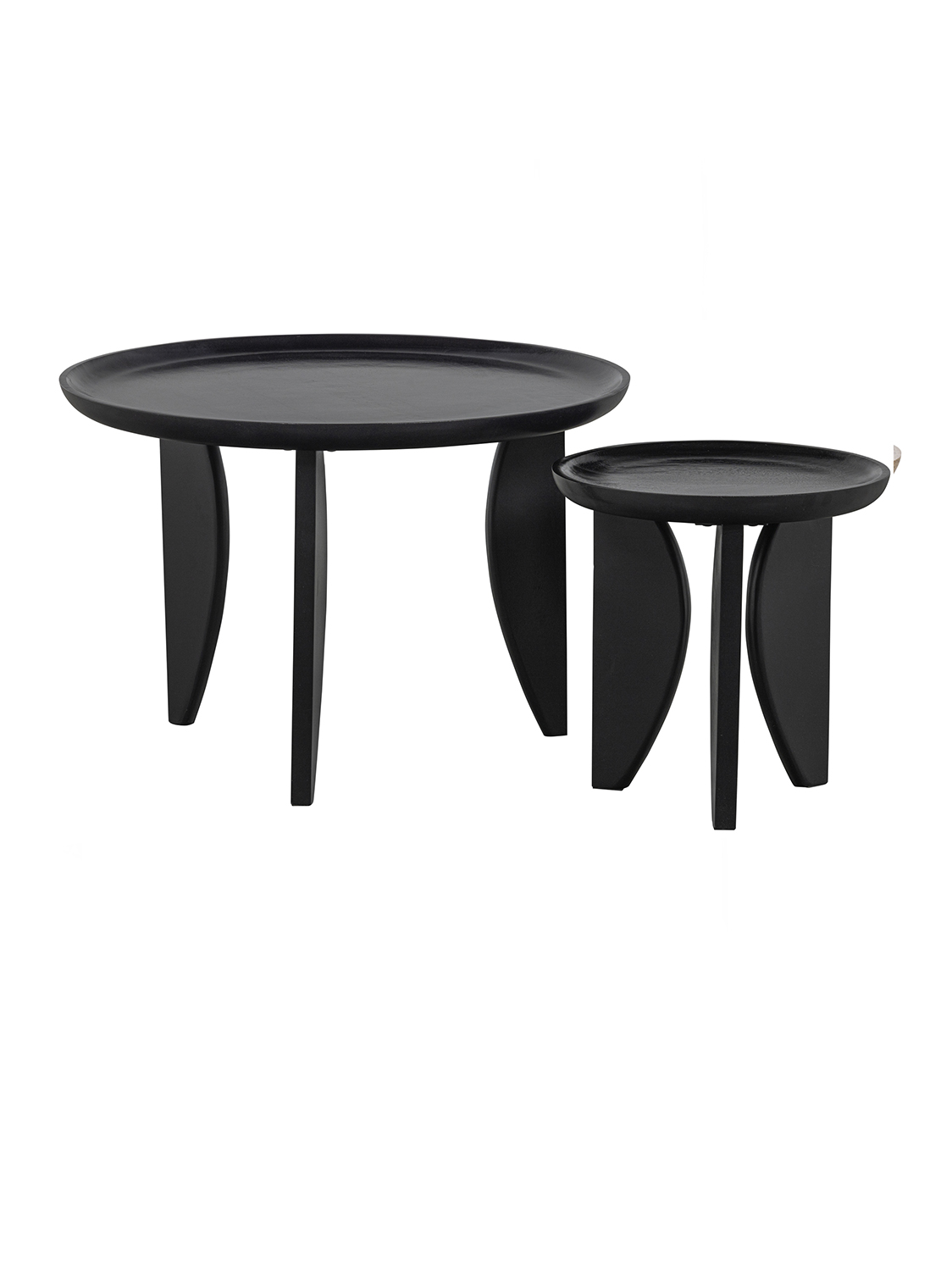 Stolovi su izrađeni od drva manga sa sjajnim crnim premazom, što pomoćni stolić čini upečatljivim parom. Drvo manga poznato je po svojoj toploj zlatnosmeđoj boji, izdržljivom rastu i dugoj trajnosti. Drvo manga također se odlikuje jasno vidljivim nijansama zrna i boja. Zrnatost, žuti sjaj ili tamne linije i čvorovi jamče da je svaki predmet od drva manga jedinstven. Drvo manga je vrlo čvrsto i jedno je od tvrđih drva, tako da se predmet od drveta manga neće lako oštetiti.
