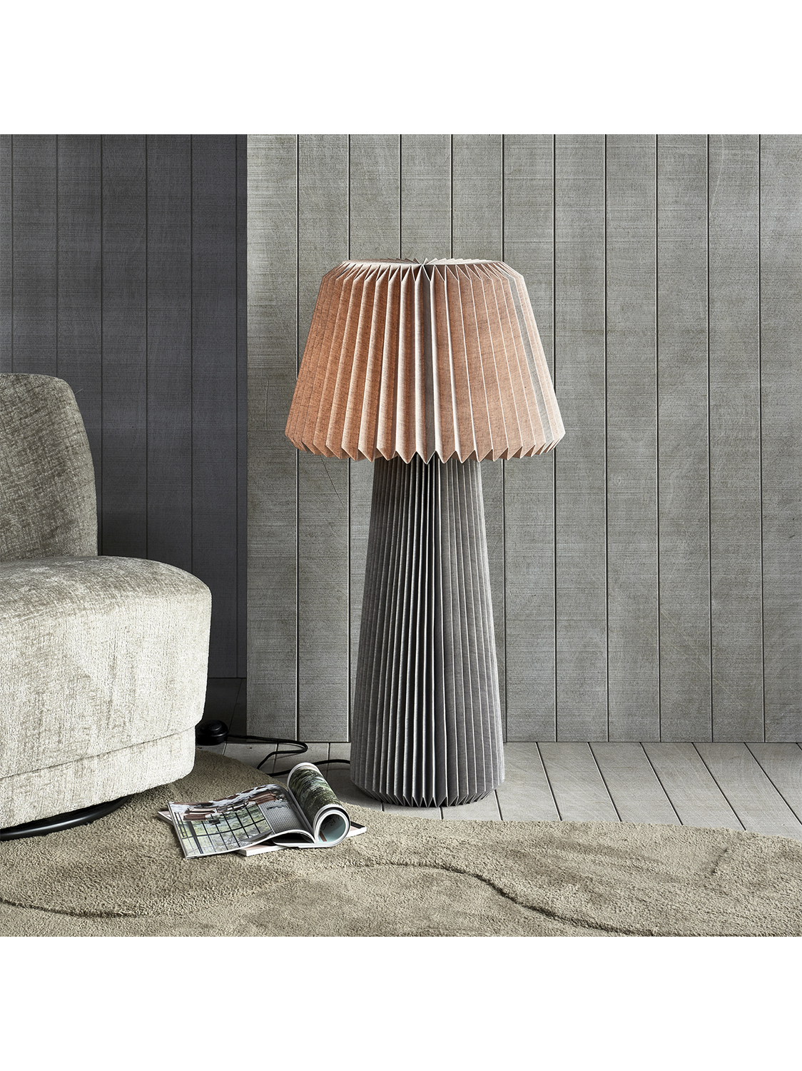Ova Sami podna lampa dolazi iz Exclusive kolekcije nizozemskog brenda interijera WOOOD, a ističe se zanimljivom tehnikom obrade papira. Elegantne linije preklopa od prirodnog materijala pružaju omekšanu raspodjelu svjetla i romantičnu atmosferu u domu.